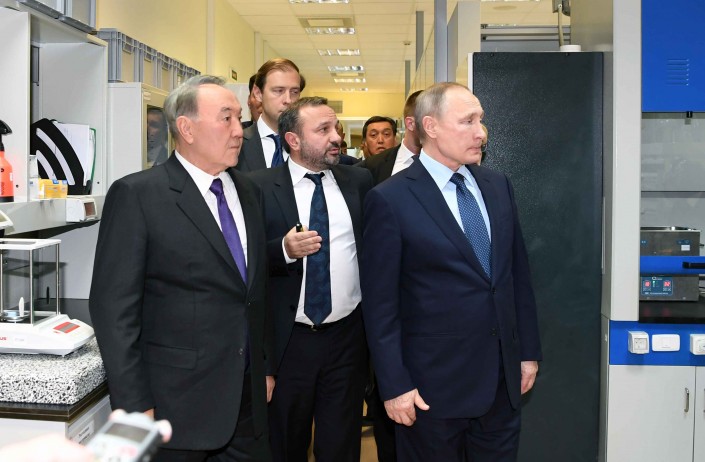 Назарбаев и Путин посетили лаборатории фармзавода под Санкт-Петербургом