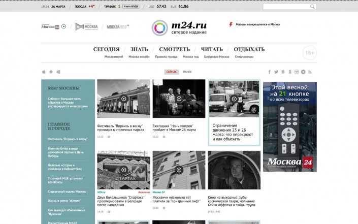 Сайт канала RT в 18.28 сообщил о 500 задержанных, а в 19.07 - о пострадавшем полицейском. На главной странице Lenta.ru появились целых три новости о митингах в Москве: о безукоризненной работе полиции, о газовом пистолете, обнаруженном у одного из протестующих, и о том, что МВД назвало число участников акции (без указания этого числа).