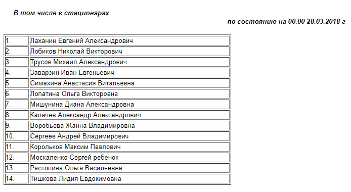 Между тем, как сообщает РИА Новости, следствие считает невозможным публиковать списки погибших при пожаре в ТЦ в Кемерово до окончания генетических экспертиз. Такое пояснение дала официальный представитель СК РФ Светланы Петренко в Telegram-канале ведомства.