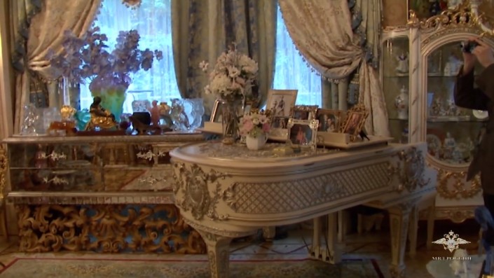 Попавшие на оперативную съемку интерьеры особняка поражают обилием предметов роскоши. Комнаты резиденции криминального авторитета обставлены дорогой мебелью.