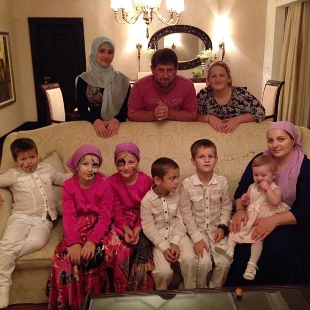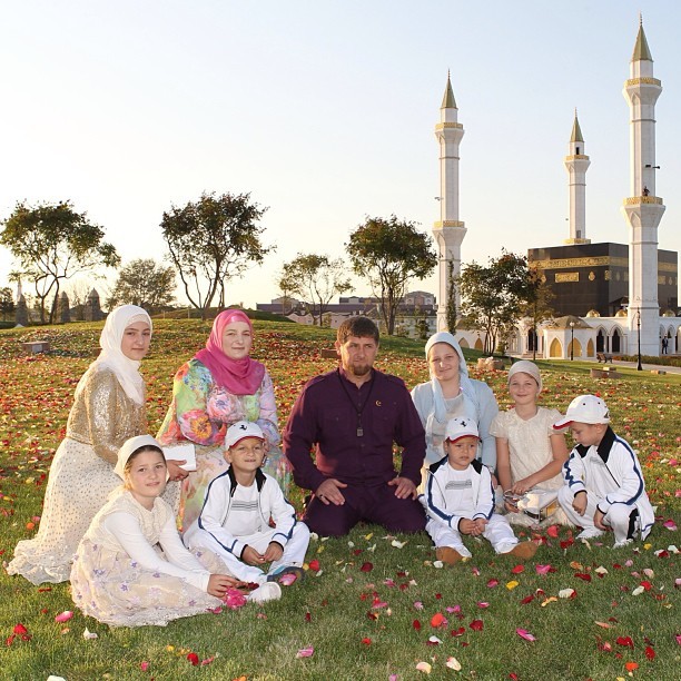 Далее несколько фотографий Рамзана Кадырова с супругой и детьми.