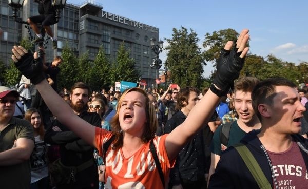 В России в день выборов задержали протестующих против пенсионной системы