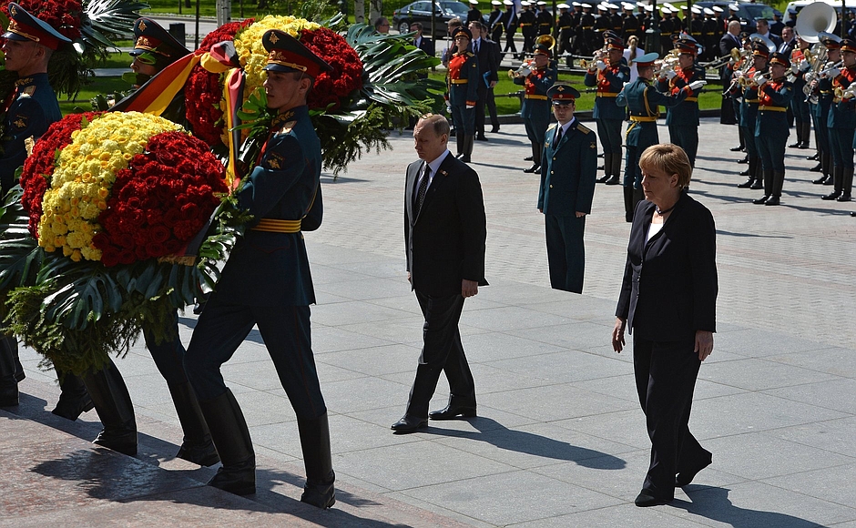 Ангела Меркель прибыла в Москву 10 мая для участия в торжественных мероприятиях в честь 70-летия Победы в Великой Отечественной войне. Перед началом переговоров вместе с Владимиром Путиным она возложила венки к могиле Неизвестного солдата в Александровском саду.