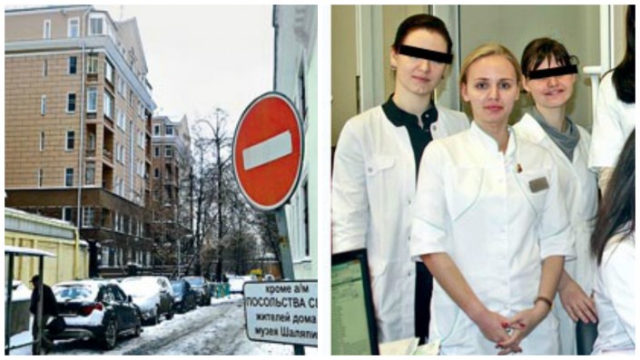 Аспирантка Эндокринологического научного центра, Москва, 2011 год (фото справа). Особо охраняемый дом с видом на посольство США, съемка января 2016 года. © thenewtimes.ru