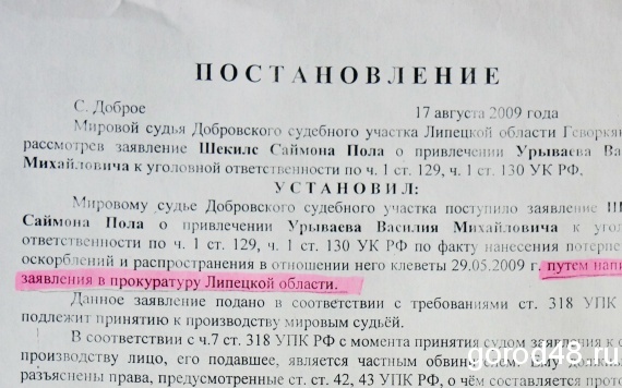 Позже липецкий портал GOROD48 раздобыл распоряжение, вызвавшее такую реакцию Путина. "Сегодня в редакцию пришел фигурант этого скандального дела Василий Урываев и принес копию обращения к Путину его жены Тамары (к которой было подколото то самое постановление судьи Геворкян). На 14-ти страницах Тамара Урываева рассказывает главе государства о том, что, по ее мнению, было подоплекой уголовного дела ее сына Романа, осужденного за развратные действия без применения насилия лицом, достигшим восемнадцатилетнего возраста, в отношении лица, не достигшего шестнадцатилетнего возраста и половой зрелости. По мнению матери осужденного, история уголовного преследования Романа началась после того, как ее муж Василий Урываев был оправдан по уголовному делу по клевете и оскорблениям, фигурантом которого был гражданин Великобритании Саймон Шекилс, его сосед по земельному участку в селе Капитанщино", - сообщает издание.