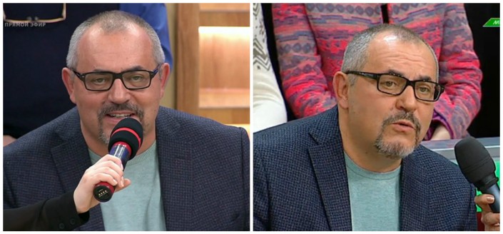 При этом, судя по реакции ведущего ток-шоу "Время покажет" Петра Толстого, передача на Первом канале действительно транслировалась в прямом эфире. Это видно на сохранившейся записи эфира.