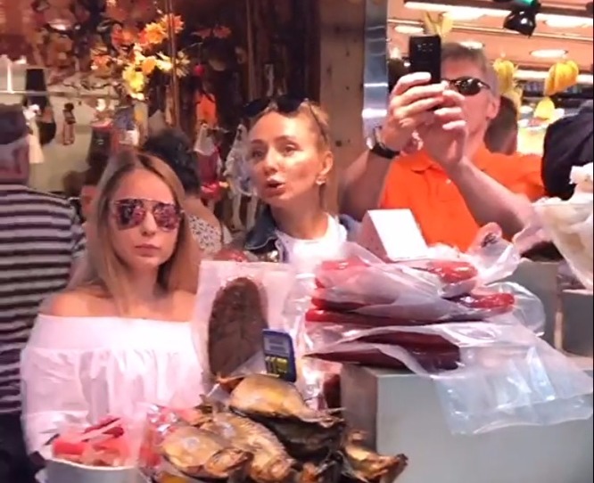 Фотоотчеты из вояжа в европейскую страну регулярно публикуют на своих страницах в Instagram жена чиновника, фигуристка Татьяна Навка, и дочь Елизавета. Особой популярностью пользуется снимок, где Песков разглядывает на рынке прилавок с хамоном.