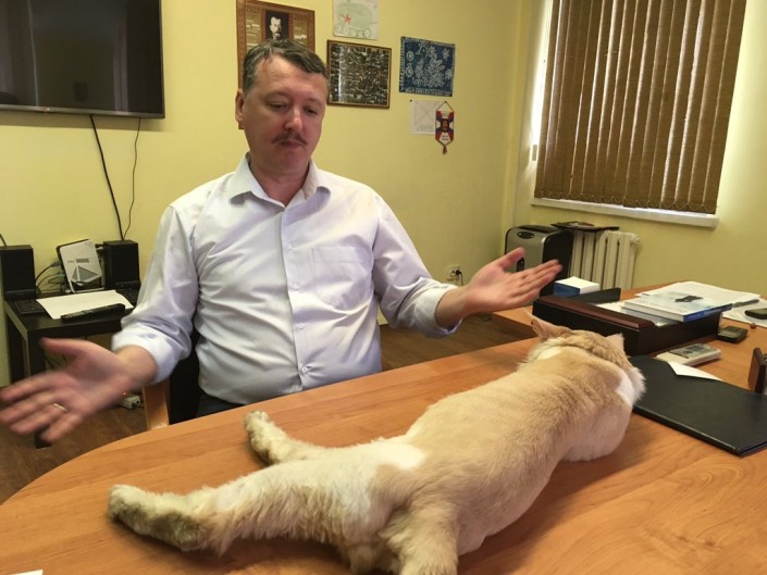 Игорь Стрелков дает интервью журналисту The Guardian в офисе в Москве. © twitter.com/shaunwalker7