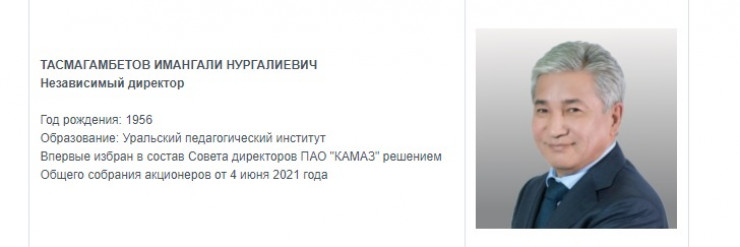 Напомним, в марте кандидатуру Имангали Тасмагамбетова предложили включить состав совета директоров "КАМАЗа".
