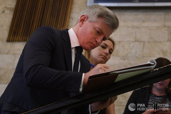 Министр правительства Москвы, руководитель департамента культуры города Москвы Александр Кибовский на церемонии прощания с Верой Глаголевой