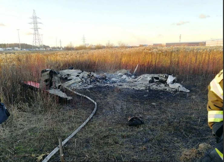 Самолет упал в районе деревни Томилино, от него осталось только пепелище.