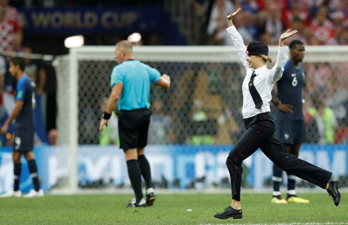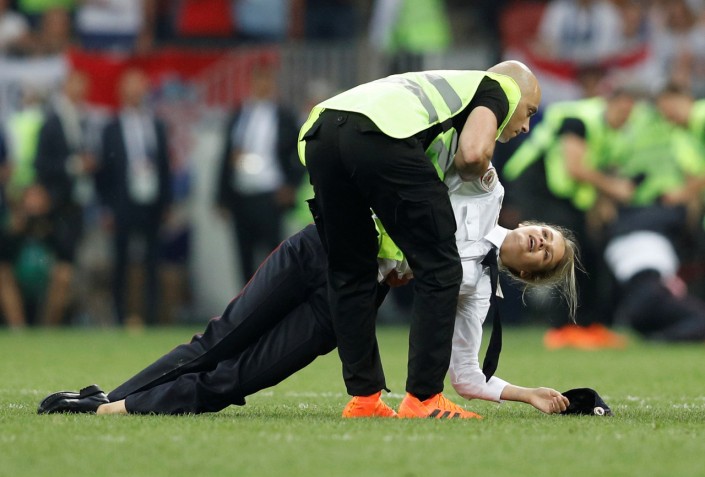 Три девушки и молодой человек 15 июля выбежали во втором тайме финального матча чемпионата мира на футбольное поле, с которого были оперативно удалены контрольно-распорядительной службой стадиона. Их отвезли в отдел полиции, где составили протоколы об административных нарушениях.