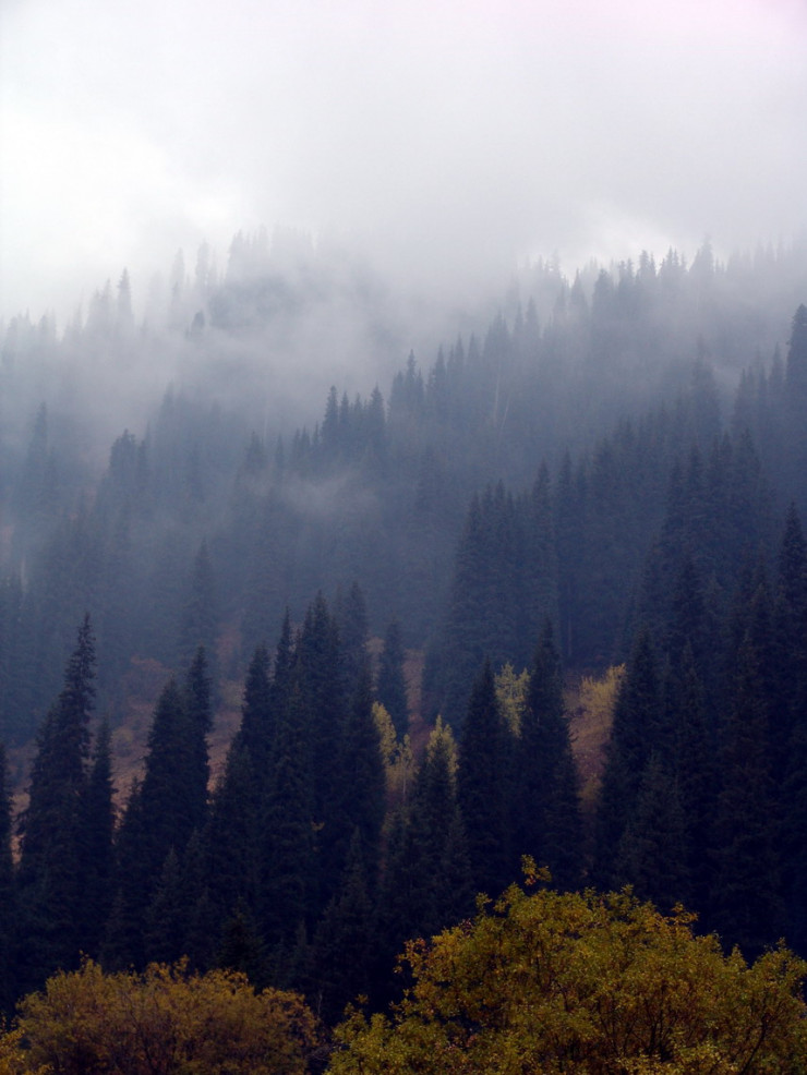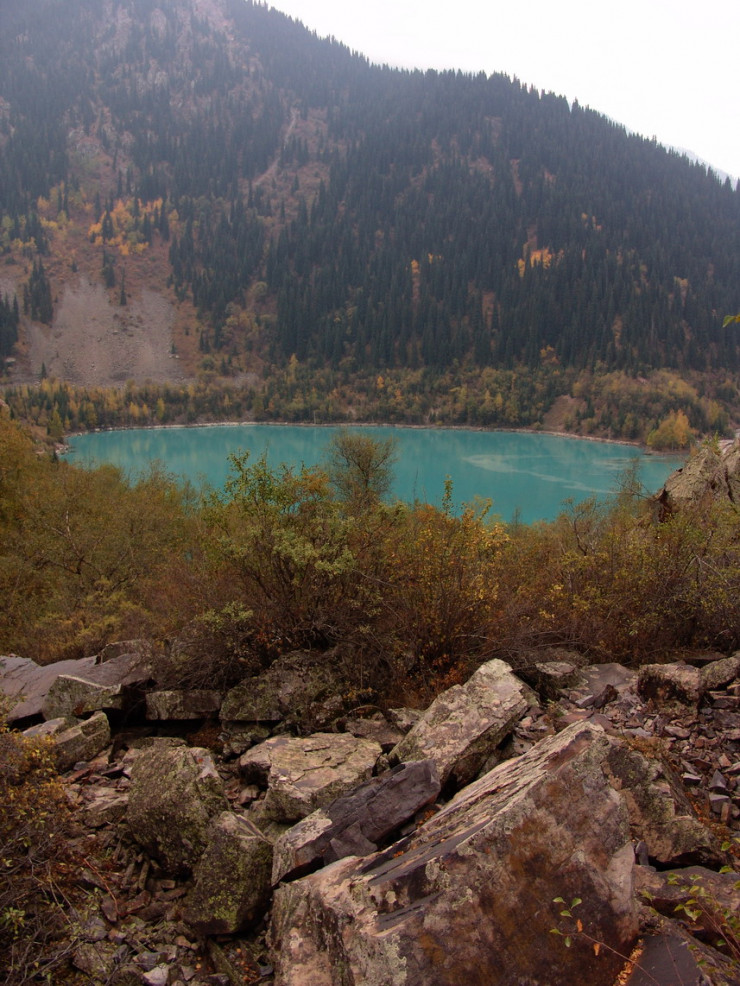 Осенние краски медленно сползают вниз как по холсту, спускаясь все ниже по горным склонам Заилийского Алатау.