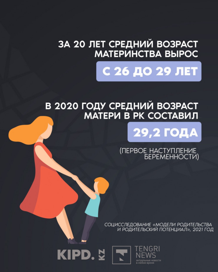 Также среди казахстанской молодежи отмечается тенденция неготовности к браку и родительской роли. А средний возраст материнства вырос с 20 до 29 лет.