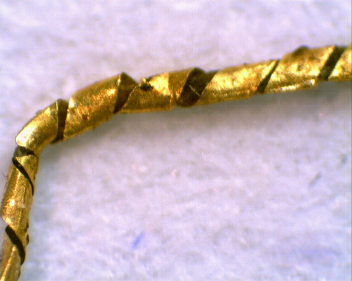 Образец золотой нити под микроскопом