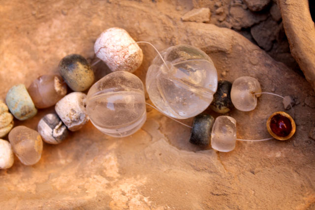 Бусы из горного хрусталя с рубиновой подвеской, обрамленной золотом, археологи оценили в 100 тысяч евро.