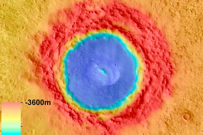 Размеры кратера, по расчетам международной группы ученых, указывают на то, что небесное тело, упавшее на Марс, было очень крупным - сравнимым по размерам с 10-километровым астероидом, рухнувшим на Землю 66 миллионов лет назад и ставшим причиной массового вымирания динозавров.