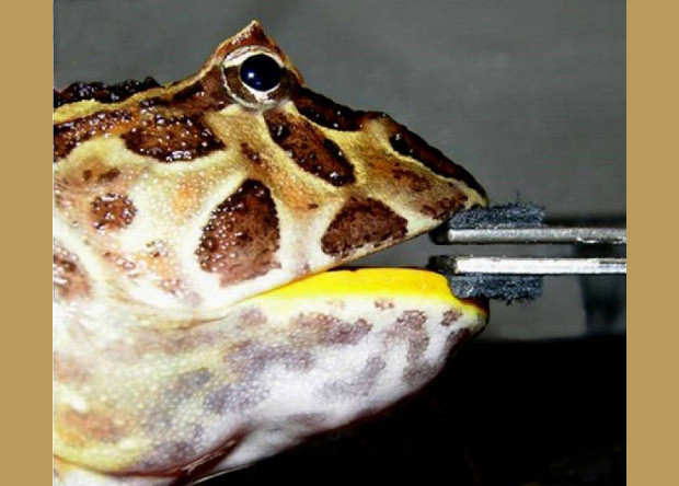 Измерение силы укуса чакской рогатки. © Scientific Reports