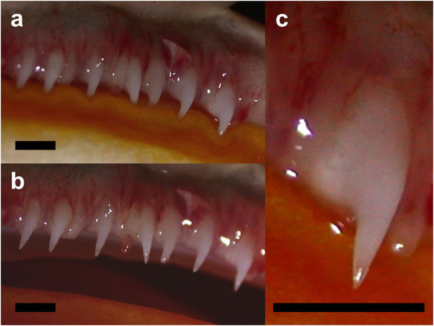 Зубы у чакской рогатки растут только на верхней челюсти. © Scientific Reports