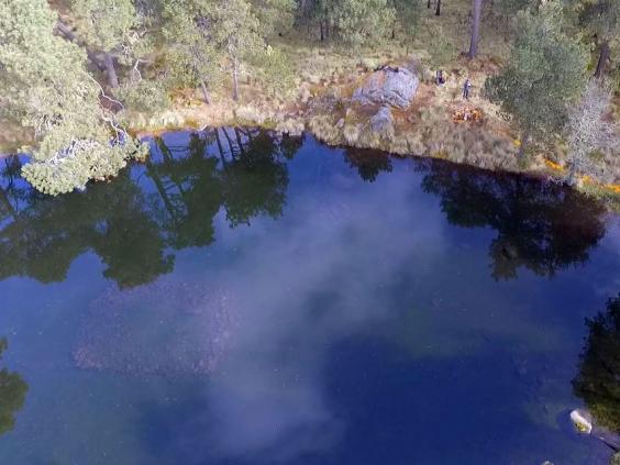 Затопленное святилище можно разглядеть в центре озера. © Isaac Gomez / Proyecto Arqueologico Nahualac