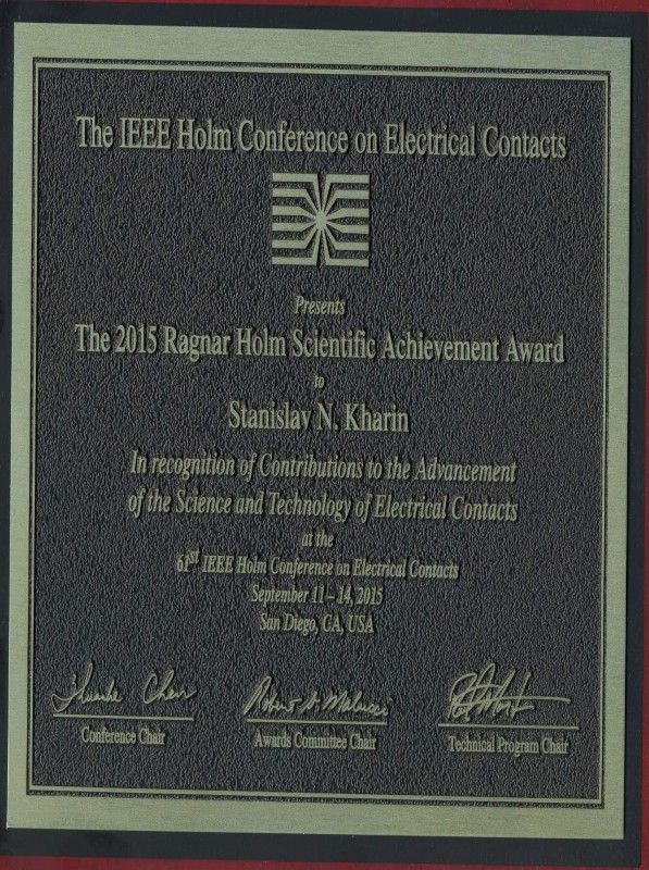 Премия казахстанскому ученому была вручена в ходе ежегодной конференции по электрическим контактам в Сан Диего (штат Калифорния, США).