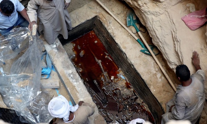 Накануне представители Министерства по делам памятников древности Египта провели операцию по разгерметизации и подъему девятитонной крышки саркофага. Позже появились первые фото, сделанные внутри загадочного черного саркофага. В пятницу планируется поднять из земли нижнюю часть гранитного памятника, общий вес которого составляет 25-30 тонн.