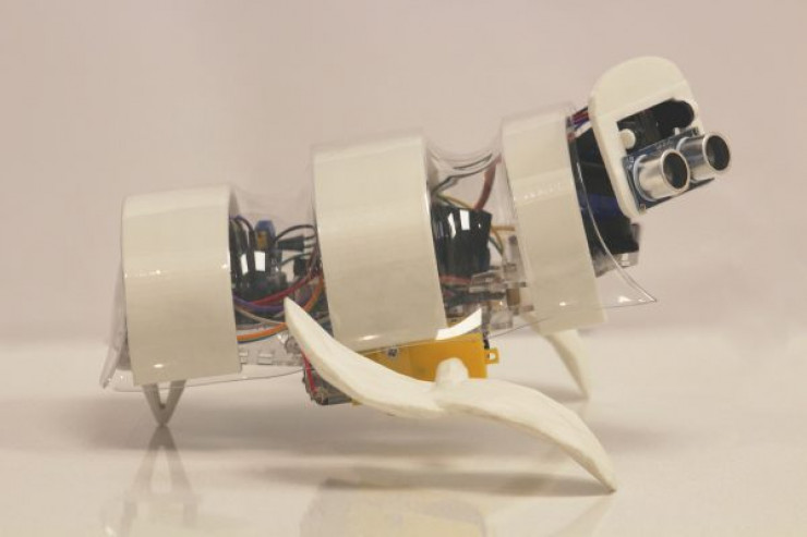 Робот перемещается по песку в поисках правильных уровней влаги для посадки семян. Помимо датчика влажности почвы, крошечный робот оснащен датчиком расстояния - он отправляет отчеты пользователю для статистических данных.