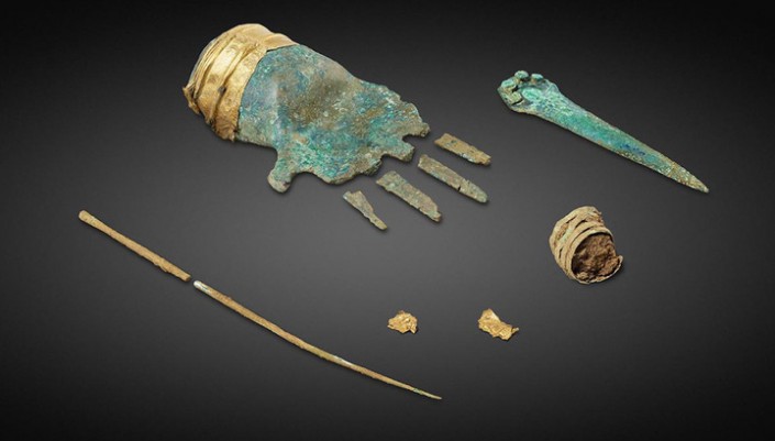 Осенью 2017 года возле деревушки Прель в Швейцарии местные жители извлекли из земли необычную находку - беспалую бронзовую руку с золотой "манжетой-браслетом", три отломившихся бронзовых пальца, а также 24-сантиметровый бронзовый кинжал и фрагмент человеческого ребра. Секрет загадочного предмета не открыт до сих пор, сообщает Вести.Ru.