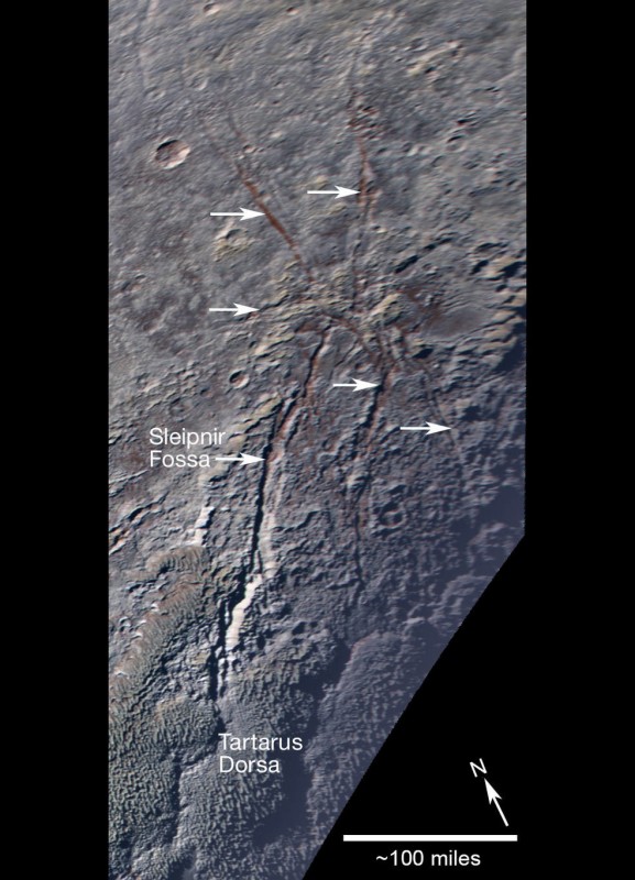 По словам члена геологической команды New Horizons Оливера Уайта, ученые ранее не видели ничего подобного в Солнечной системе. "Какую же паутину сплела геология Плутона. Это еще раз доказывает, что Плутон - нечто особенное", - заявил сотрудник NASA.