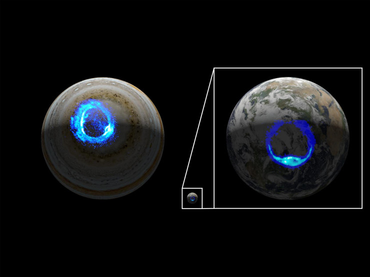 Ярко-синее округлое сияние было обнаружено космическим кораблем NASA Juno, который в настоящее время изучает газовый гигант с орбиты.