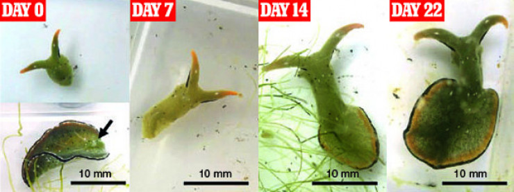 Исследователи обнаружили, что два вида морских слизней рода Elysia могут "отрубить" себе голову, а затем регенерировать совершенно новое тело с сердцем и другими внутренними органами всего за пару недель. При этом тело без головы может жить от нескольких дней до нескольких месяцев. Избавиться от старого тела и вырастить новое слизняки способны как минимум дважды, говорят исследователи.