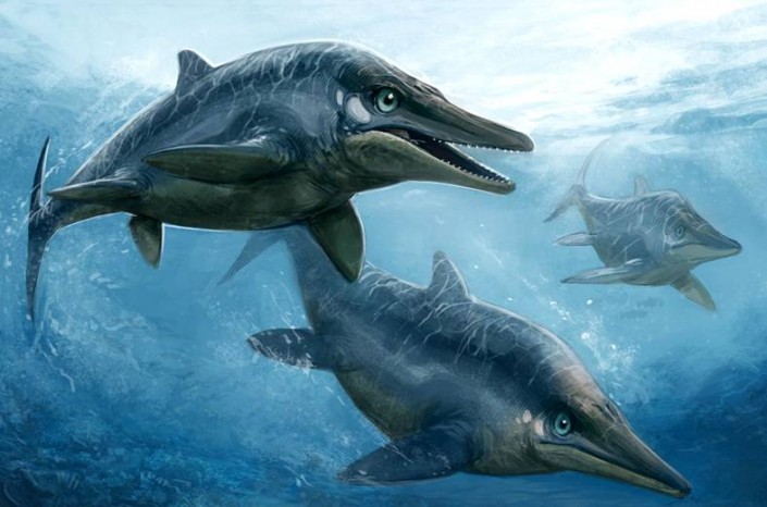 Ихтиозавры - отряд вымерших крупных морских рептилий. Их форма сочетала в себе признаки рыб и дельфинов. Они достигали 24 метров в длину. Ранее останки ихтиозавров были найдены в Германии, России и Индии.