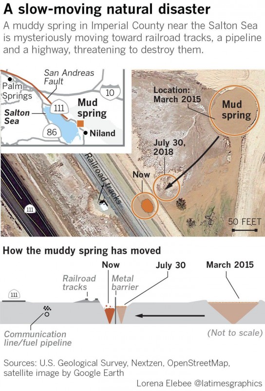Американские ученые высказали опасения по поводу аномальной активности грязевого гейзера, растущего возле озера Солтон-Си в Южной Калифорнии, сообщает Los Angeles Times.