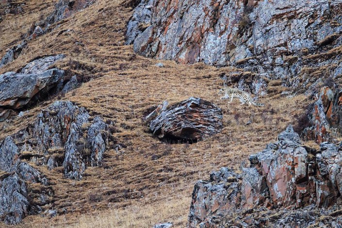 Мужчине посчастливилось наблюдать за охотой ирбиса на голубых баранов. Вместе с другими участниками съемочной группы фотограф следовал за хищником, держась на безопасном расстоянии.