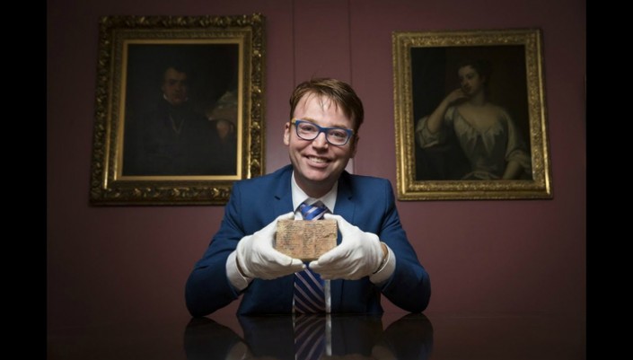Даниэль Мэнсфилд держит в руках табличку Plimpton 322. © UNSW/Andrew Kelly