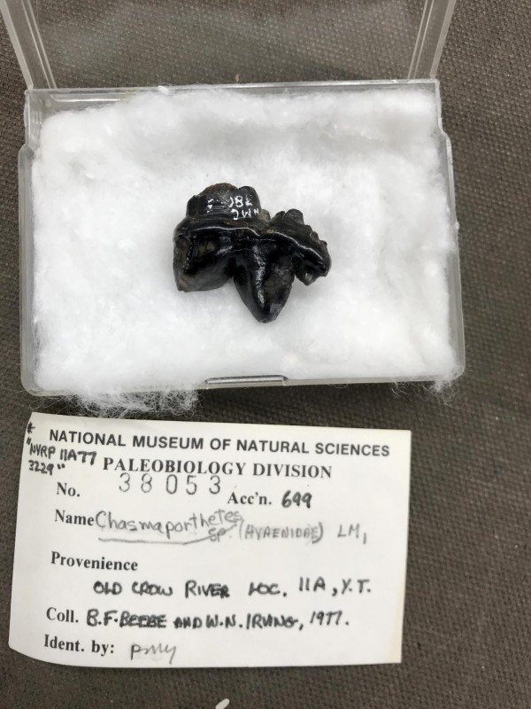 В 1970 году палеонтологи нашли за полярным кругом, в бассейне реки Олд Кроу на канадской территории Юкон, два окаменевших зуба. Ученые передали их в Канадский музей природы в Оттаве. Они пролежали в запасниках несколько десятилетий, пока старые записи, касающиеся находки, не нашел палеонтолог Ларс Верделин из Шведского музея естественной истории.