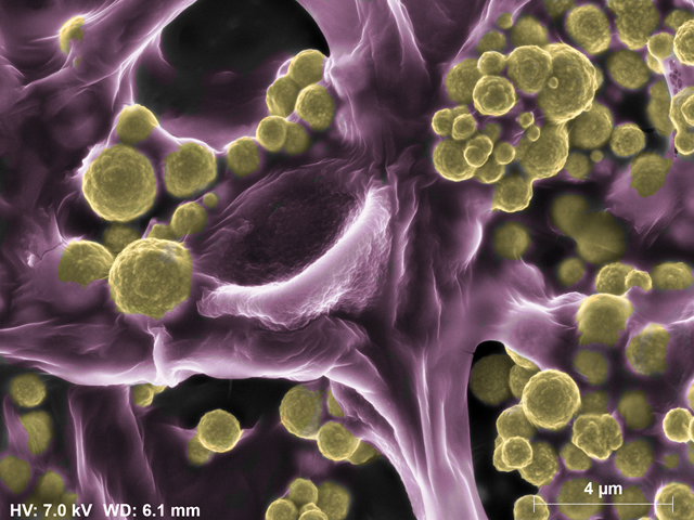 Усеянные золотыми частицами клетки Fusarium oxysporum. © CSIRO