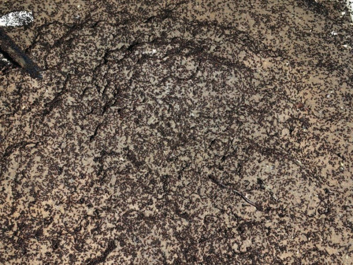 Спустя некоторое время насекомые вырвались на свободу и колония исчезла. Изучив тела погибших муравьев, ученые нашли следы многочисленных укусов и дыры в брюшной полости. Это указывает на то, что муравьи ели своих сородичей, чтобы выжить. Выживание и рост колонии в течение многих лет оказались возможны благодаря постоянному притоку новых муравьев из гнезда.