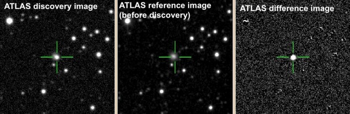 Необычайно яркий объект был обнаружен 17 июня этого года с помощью телескопов на вулканах Мауна-Лоа и Халеакала (Гавайи), которые используются в рамках проекта ATLAS (англ. Asteroid Terrestrial-impact Last Alert System), предназначенного для отслеживания угрожающих Земле астероидов. Ученые рассказали о наблюдениях в интернет-сервисе ATel (The Astronomer's Telegram), предназначенном для быстрого распространения среди астрономов информации о новых космических явлениях, включая гамма-вспышки, суперновые, новые и другие оптические транзиенты.
