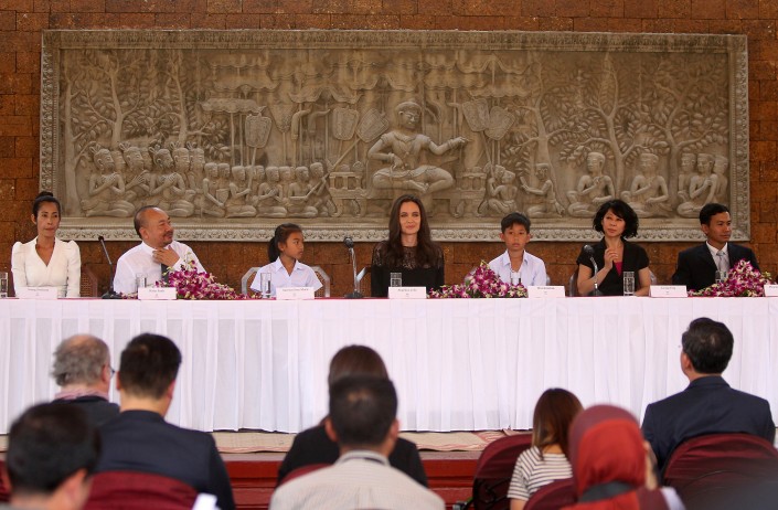 Артистка приняла участие в презентации своего фильма First They Killed My Father ("Сначала они убили моего отца") в Баттамбанге. Именно в этом городе она когда-то усыновила своего старшего сына.