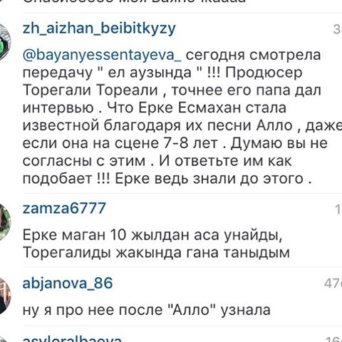 Поклонники Ерке сообщили об этом Баян и попросили ее дать подобающий ответ.