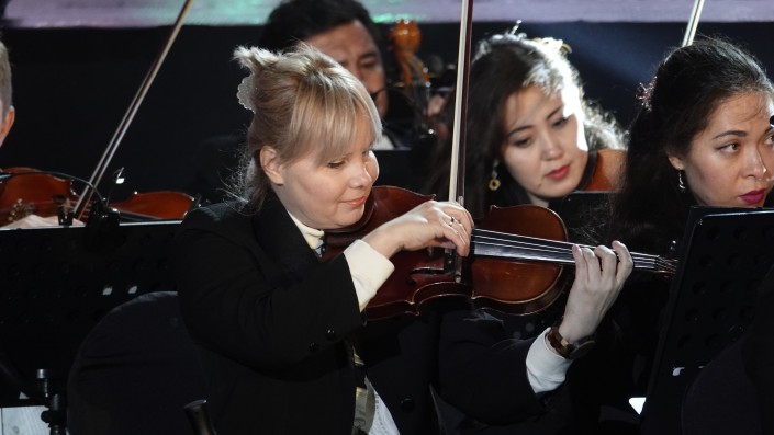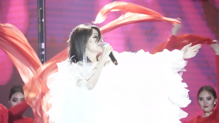 Первой на сцену поднялась Камшат Жолдыбаева и исполнила "Карамель". После выступления ей вручили памятный приз - статуэтку международного музыкального фестиваля Star of Asia. А певица, танцовщица, талантливый хореограф Айдана Дека из Кыргызстана исполнила "Планету".