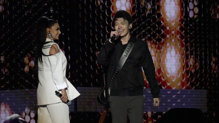 Певица из Алматы, окончившая музыкальную академию в Италии, Malika Yes выступила в дуэте вместе с молодым исполнителем Оразбаем Сайлаубаем, который был отобран с помощью социальной сети Instagram.