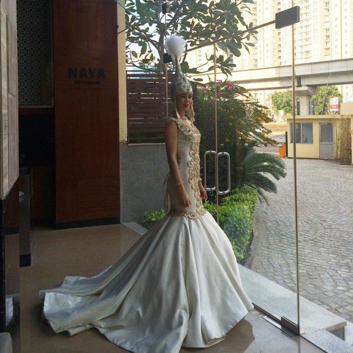 Отметим, что наряды для модели предоставили казахстанские дизайнеры Радмила Гишаева, Дарига Тайшикова, а украшения были от бренда Brosh.