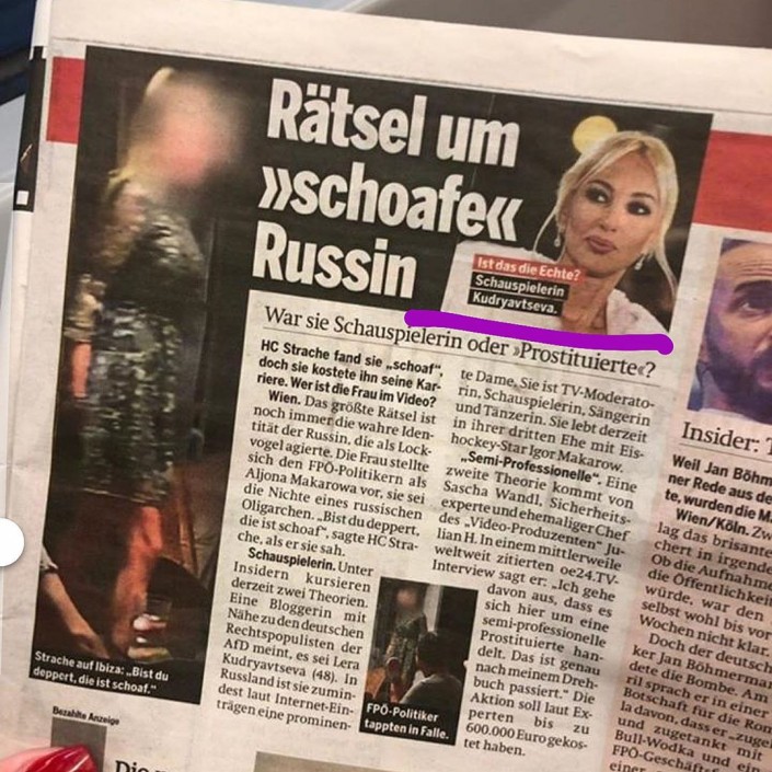 Накануне австрийский таблоид Osterreich Zeitung разместил материал под названием "Была она актрисой или "проституткой"?", сопроводив его фотографией телеведущей. Автор публикации утверждает, что девушкой на скандальной видеозаписи, с которой беседовал Штрахе, была именно Кудрявцева.