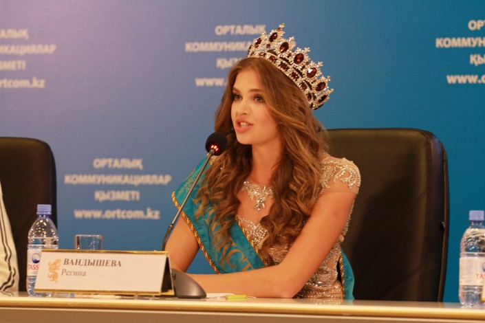 Победительница конкурса 2014 года Регина Вандышева отметила, что после победы в "Мисс Казахстан" получила огромный опыт и заработала право представлять страну на финале "Мисс Мира", который пройдет в Китае 19 декабря.