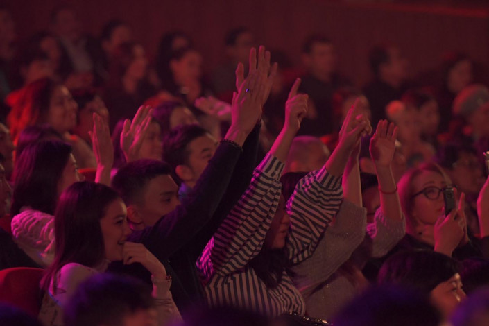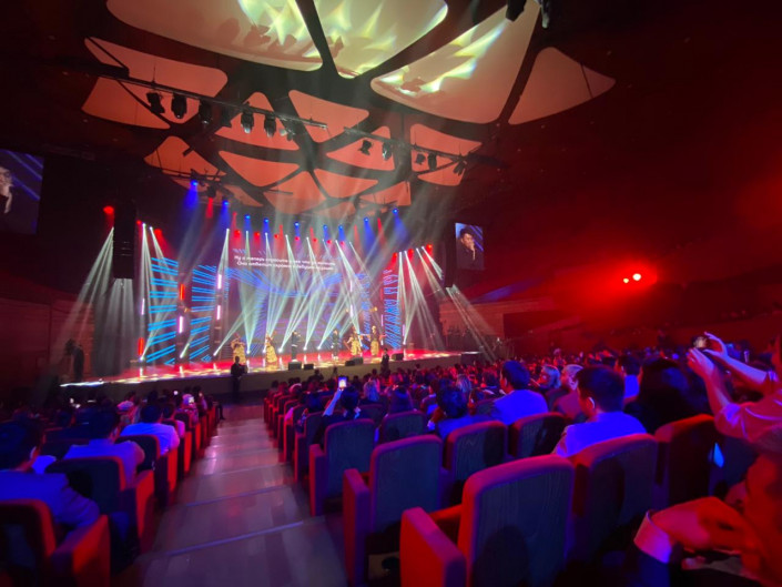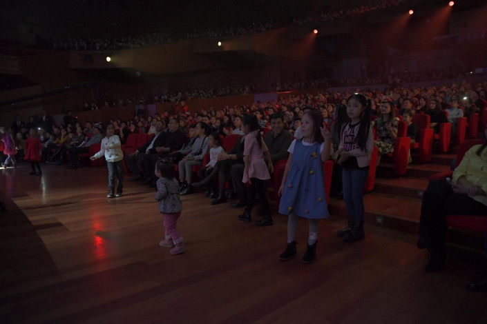 19.10 Сегодня в ЦКЗ sold out. На Máńgilik El Daýysy приходят семьями. В зале много и молодежи, и представителей старшего поколения.