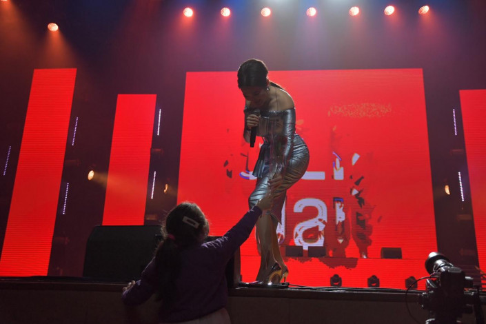 Маленькие поклонники Ерке Есмахан танцуют прямо перед сценой.