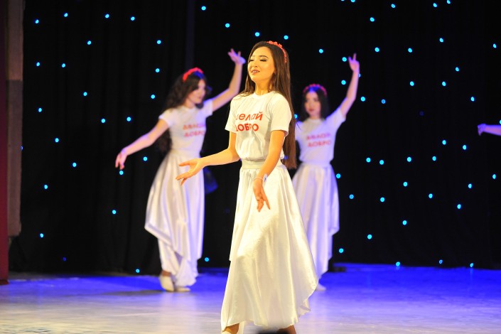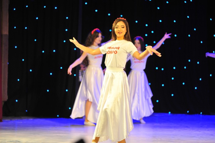 В региональном конкурсе красоты приняли участие девять девушек из Кокшетау. Конкурсантки должны были максимально раскрыть свои таланты, представить себя зрителям и компетентному жюри в четырех турах. В первом туре девушки исполнили философский танец "Твори добро".