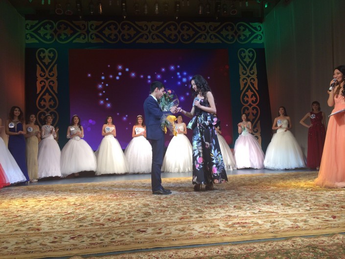 Кроме того, для всех стал неожиданностью выход на сцену молодого парня с букетом цветов. Он попросил у ведущих микрофон и прямо на сцене сделал предложение руки и сердца одной из участниц конкурса - Айсулу Мухамадиевой. Финалистка дала свое согласие и под громкие овации зала они станцевали вальс.